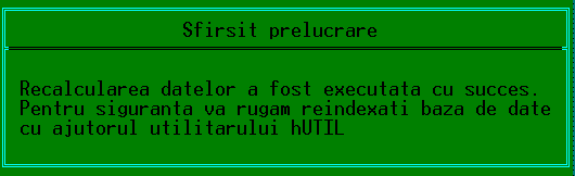 AADD (aMes, "Recalcularea datelor a fost executata cu succes.")