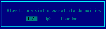 Mai jos prezentăm modul în care se creează o fereastră de decizie pentru alegerea uneia dintre operațiile Op1, Op2 sau abandonarea prelucrării.